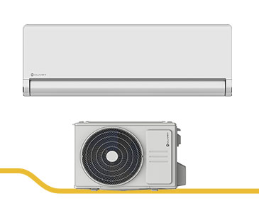 MONOSplit: Systemet består af 1 enhed til brug udendørs der kan monteres på husets yderside eller på terrassen, som kan tilsluttes til et opdelt airconditionanlæg med henblik på at opvarme og afkøle ét rum.